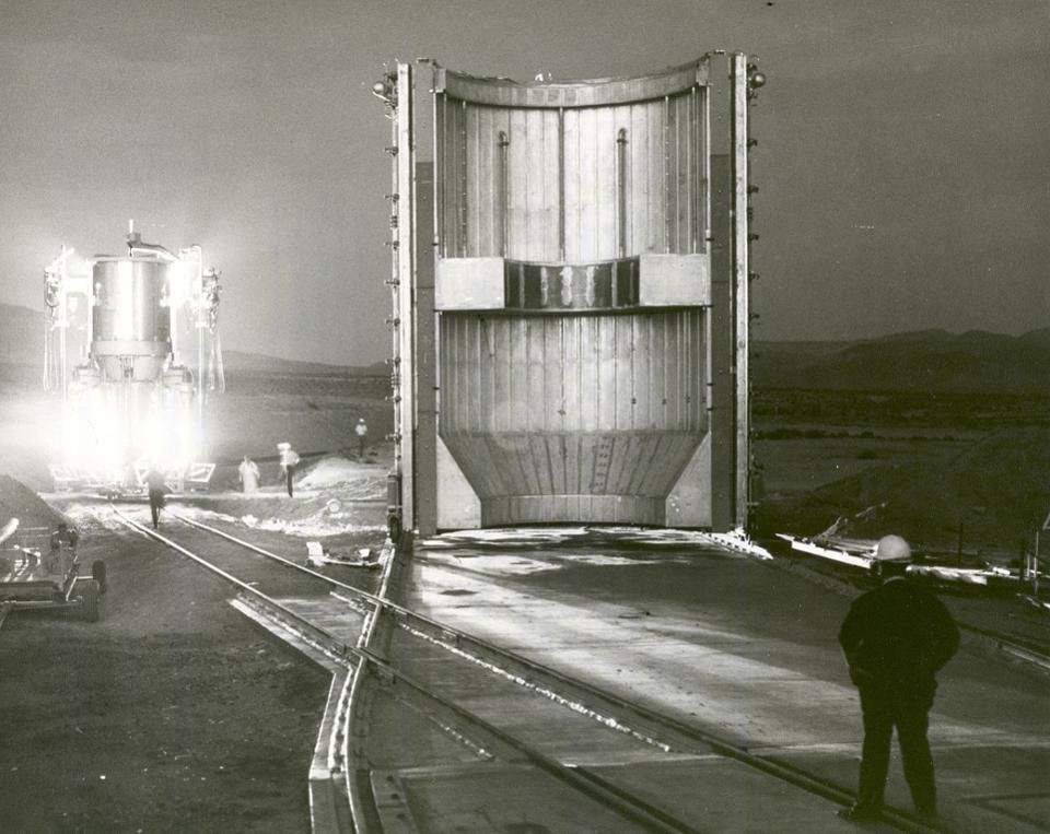 - 一枚核動(dòng)力火箭發(fā)動(dòng)機(jī),準(zhǔn)備在1967年進(jìn)行試驗(yàn)。這枚火箭由質(zhì)量/能量轉(zhuǎn)換驅(qū)動(dòng),E =mc2。圖片來源:ECF(實(shí)驗(yàn)發(fā)動(dòng)機(jī)冷流)實(shí)驗(yàn)核火箭發(fā)動(dòng)機(jī),美國宇航局,1967年。